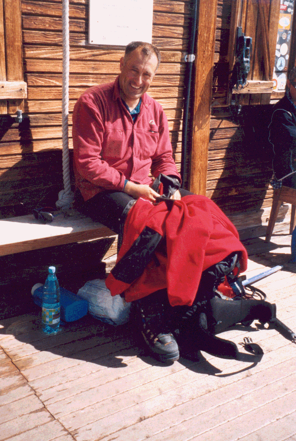 L'Eudald, tot content, prenent el solet al refugi Gnifetti