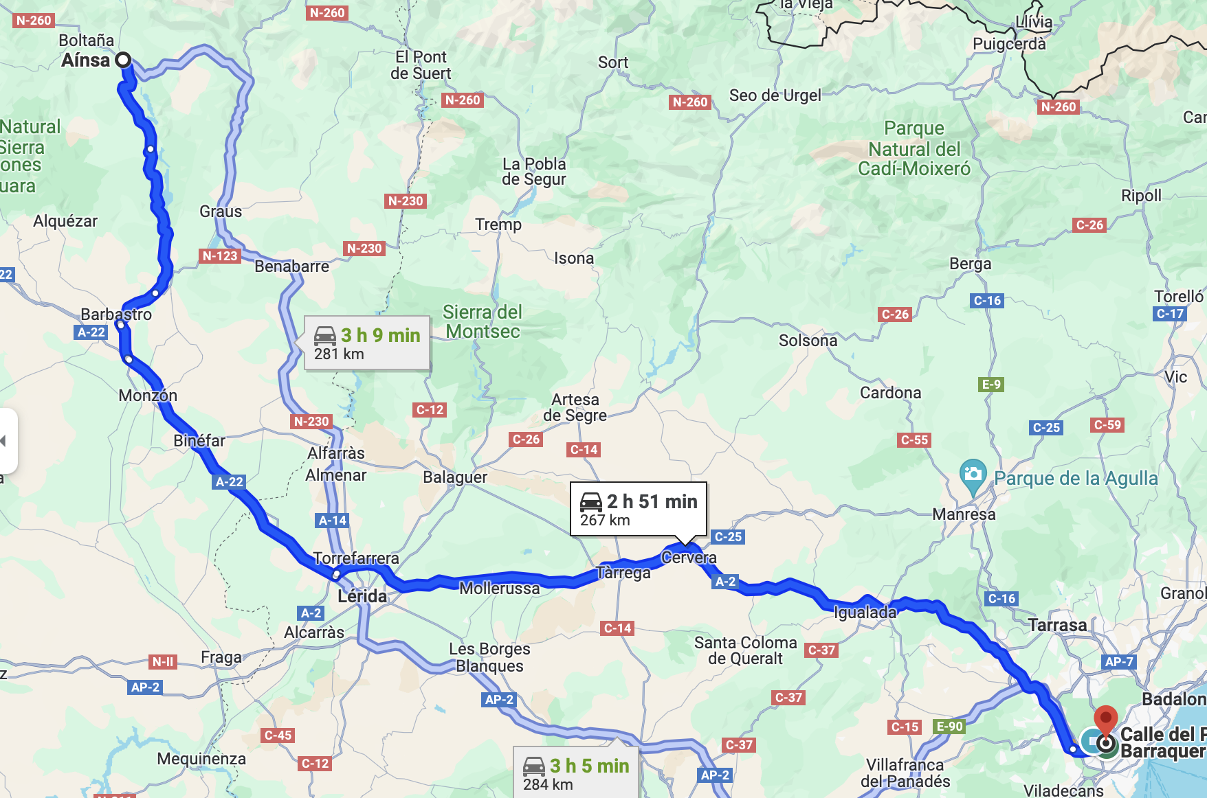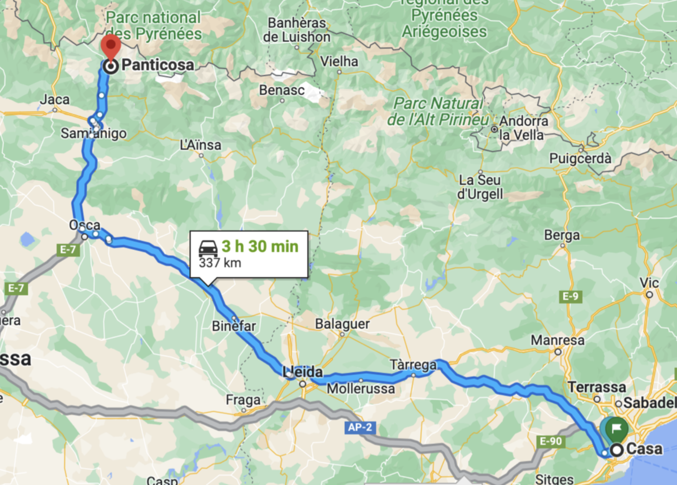 Recorregut: Barcelona – Lleida – Osca – Panticosa.