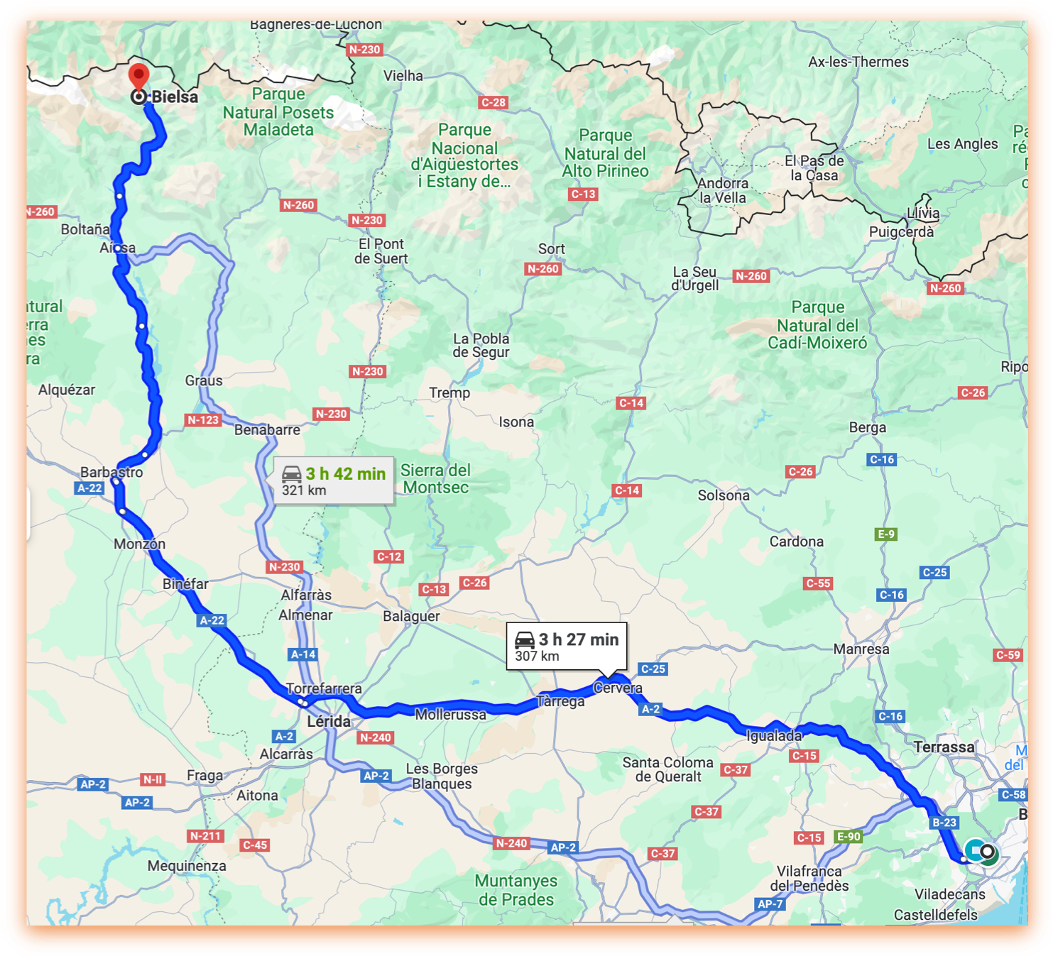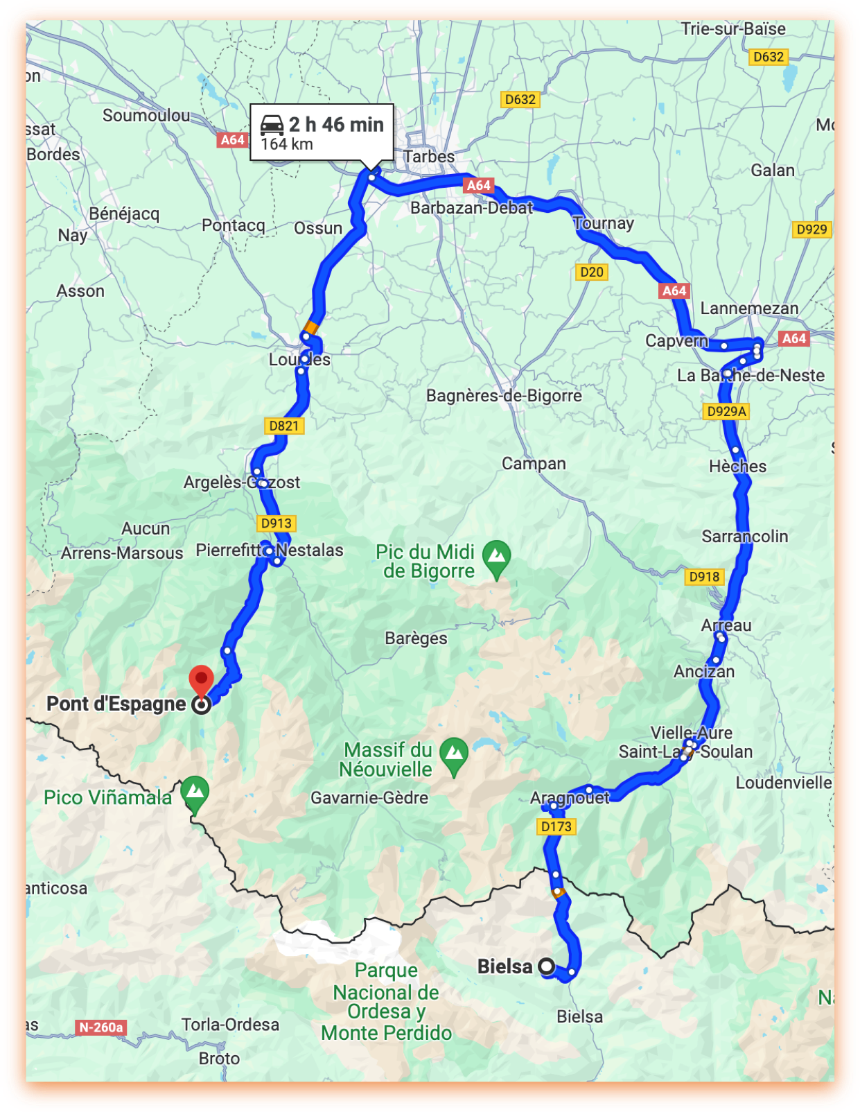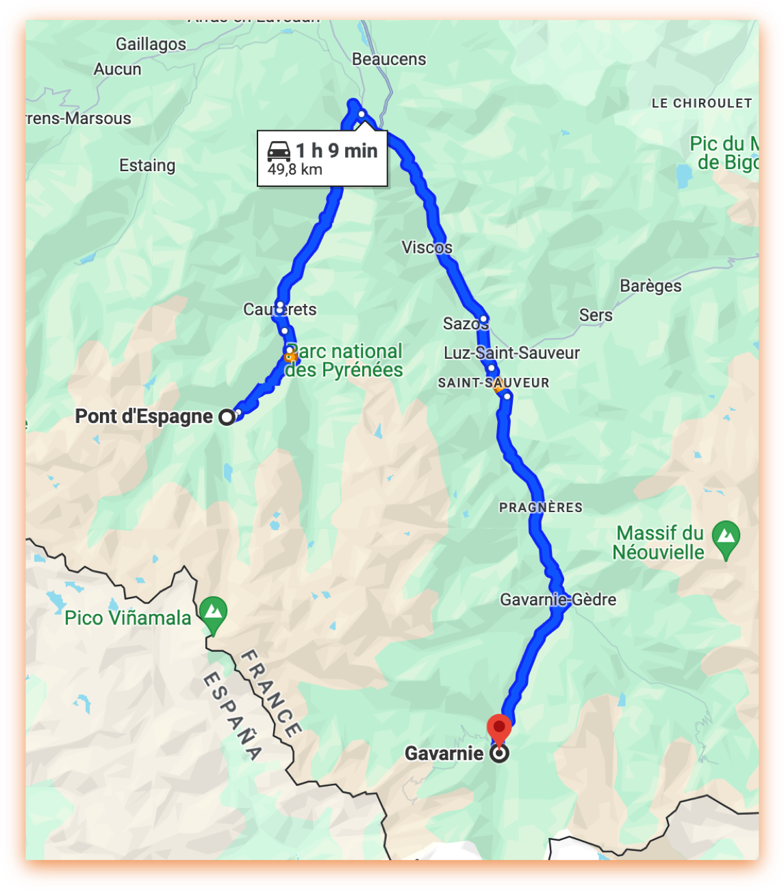 cotxe directament al Pont d'Espagne. Estimació de